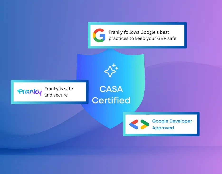 Franky uses only Google-approved optimization methods, so you never have to worry about penalties or account suspension. Franky strictly adheres to Google's guidelines to safeguard your business reputation and ranking.