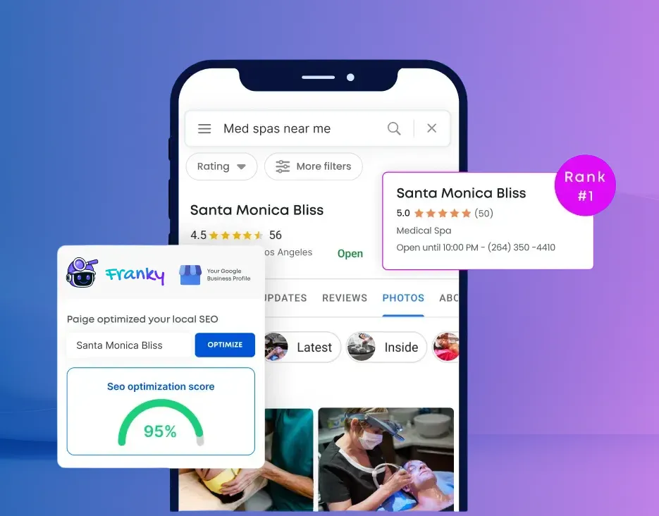 Franky analyzes millions of data points to determine what the top ranking Google Business Profiles are doing that you're not and tells you exactly what you need to do to rank higher, and will do most of it automatically for you.