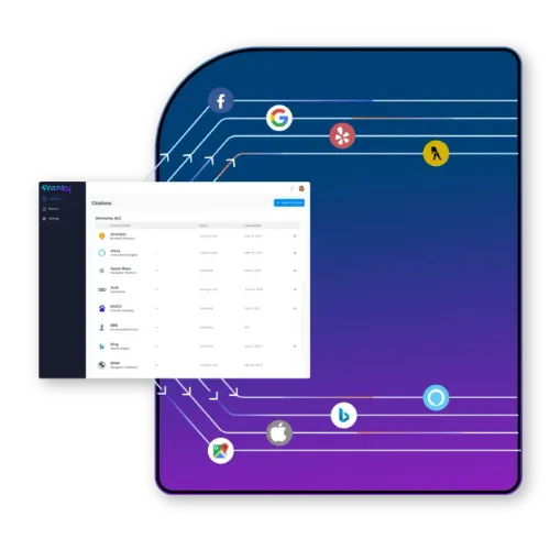 Our Citations AI syncs your business name, address, phone, hours, and details to Google, Yelp, Facebook, Apple Maps, and 60+ other directories automatically.